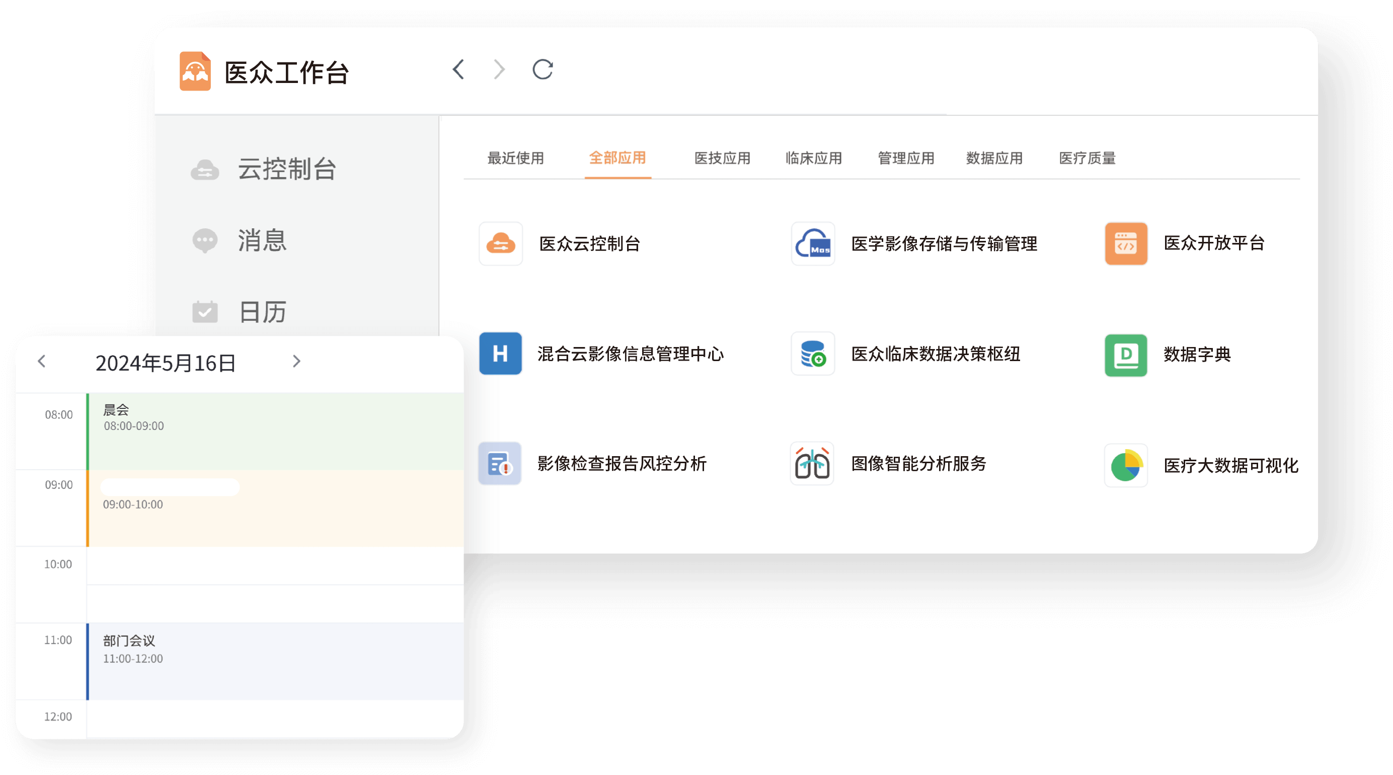醫(yī)眾工作臺(tái)是承載醫(yī)眾全部數(shù)據(jù)能力與功能的應(yīng)用框架,采用 Docker 技術(shù)進(jìn)行分布式部署。每一位用戶都擁有完整且獨(dú)立的云端節(jié)點(diǎn)。
